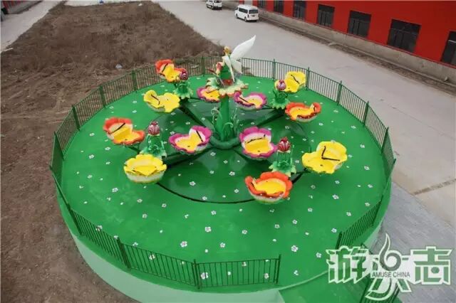 《桃花飞舞》由一朵朵缤纷绽放的桃花座椅围绕,中间高高地耸立着一朵最大的桃花之王,传说中美丽的桃花仙子优雅地坐在上面,色彩艳丽、形态逼真,让每一位乘客置身其中,都能感受到如仙境一般,前所未有的视觉盛宴。