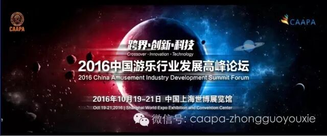 中国游艺机游乐园协会主办的“2016中国(上海)国际游乐设施设备博览会(CAE)”将于2016年10月21日-23日在上海世博展览馆H1馆举行。博览会同期,将于10月19-20日召开“2016中国游乐行业发展高峰论坛”。敬请关注!博览会及峰会参与请联系我们,联系电话:010-68825007,63967869